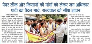 । मनकपुर चुंगी से एसडीएम कार्यालय तक पदयात्रा कर UKSSSC पेपर लीक की सीबीआई जांच और किसानों के बकाया गन्ने के भुगतान एव किसानो की
