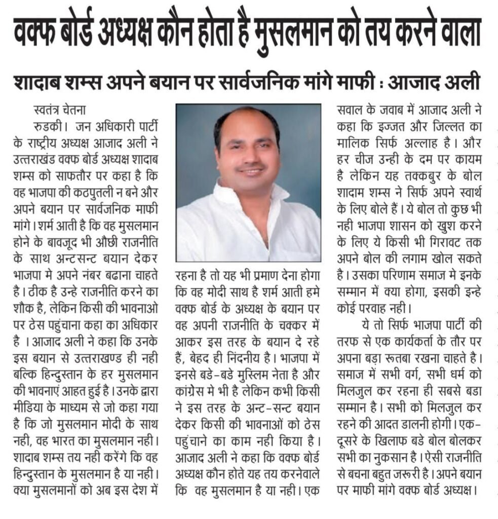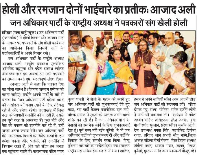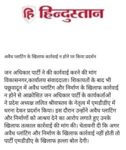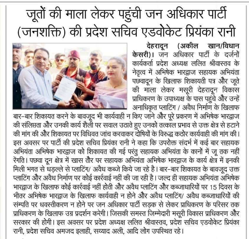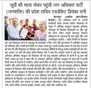 जन अधिकार पार्टी -जनशक्ति के दर्जनों कार्यकर्ता प्रदेश अध्यक्ष Lalit Srivastava Uttarakhandi एवं प्रदेश सचिव एडवोकेट प्रियंका रानी के नेतृत्व में
