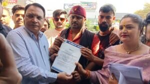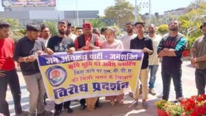 सहायक अभियंता पछवादून अभिषेक भारद्वाज के खिलाफ शिकायती पत्र और जूते की माला लेकर मसूरी देहरादून विकास प्राधिकरण के उपाध्यक्ष के पास पहुंचे दर्जनों कार्यकर्ता